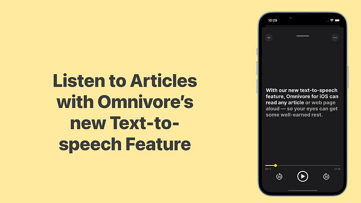 With our new text-to-speech feature, Omnivore for iOS can read any article or web page aloud — so your eyes can get some well-earned rest.